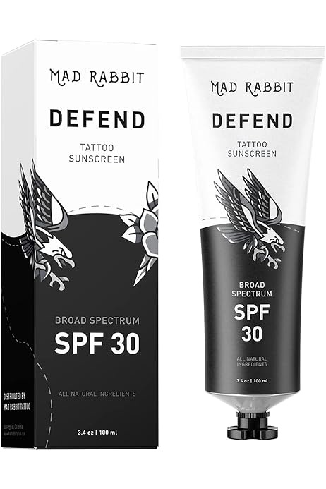 Amazon Com Mad Rabbit Defend Tattoo Sunscreen Spf 30 100ml Tube All Natural Mineral Sunscreen Lotion Tattoo Fade Protection And Moisturizer Anti Aging Formula Beauty Personal Care