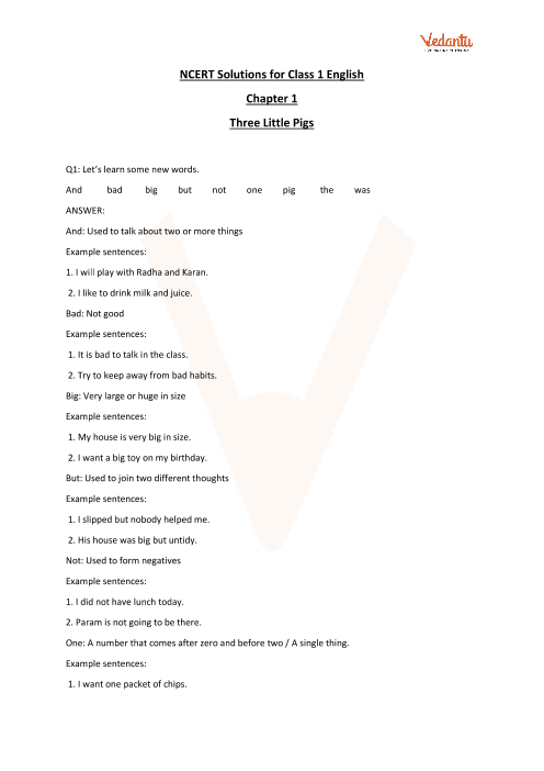 Ncert Solutions For Class 1 English Chapter 2 Three Little Pigs Learn Cbse